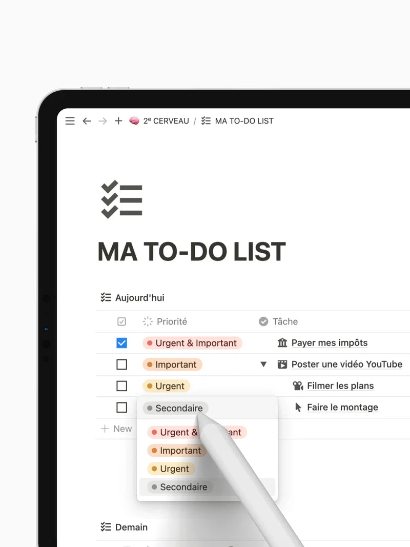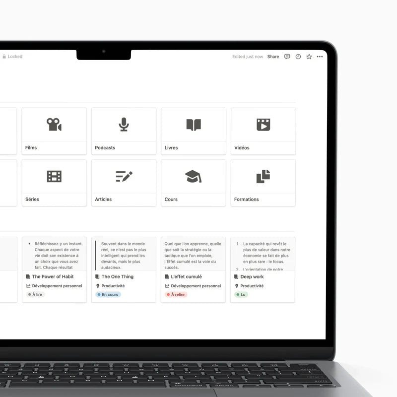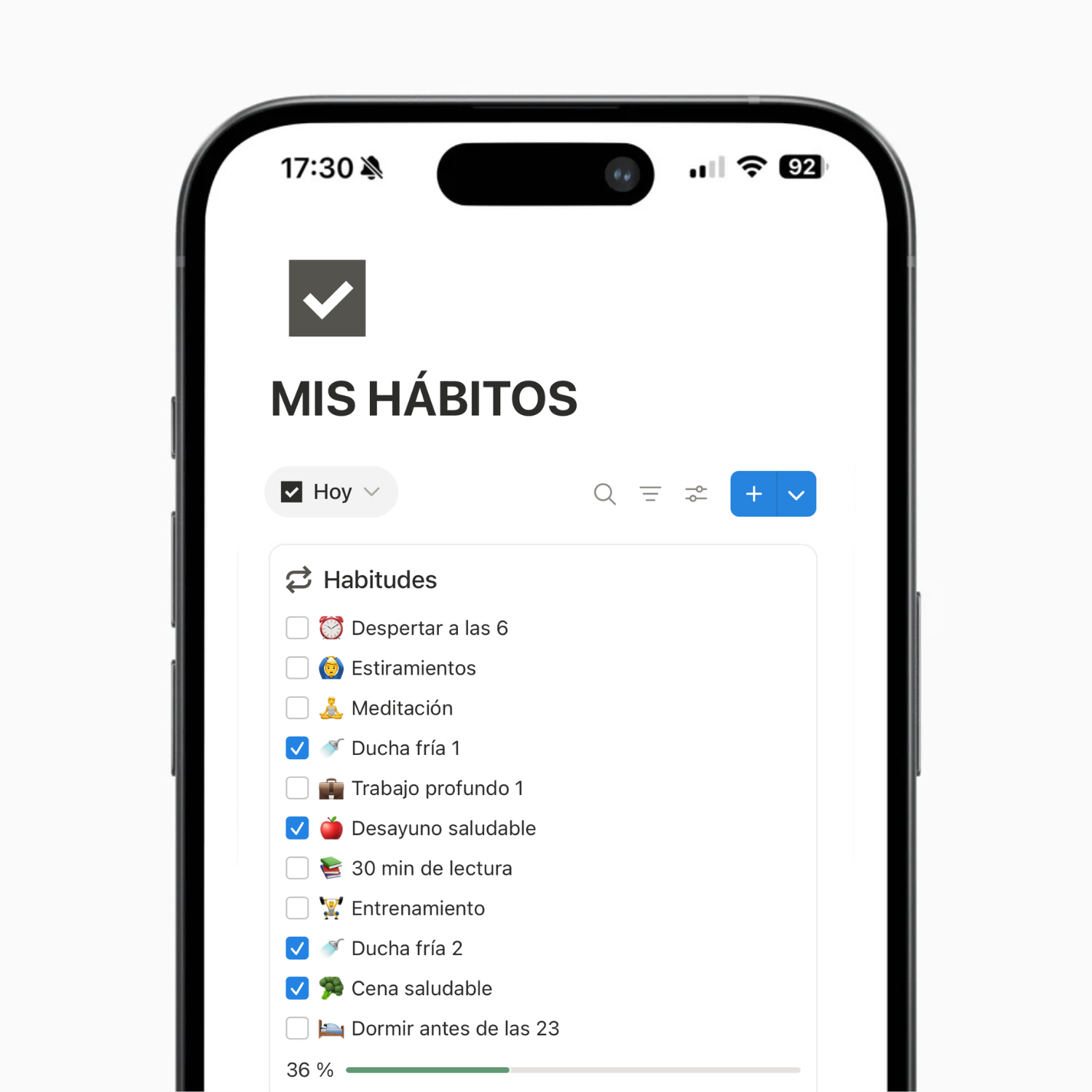 Un sistema de Notion listo para usar que reúne tus tareas, proyectos, notas y hábitos. Lo abres, lo duplicas y empiezas. Simple, claro y eficaz.